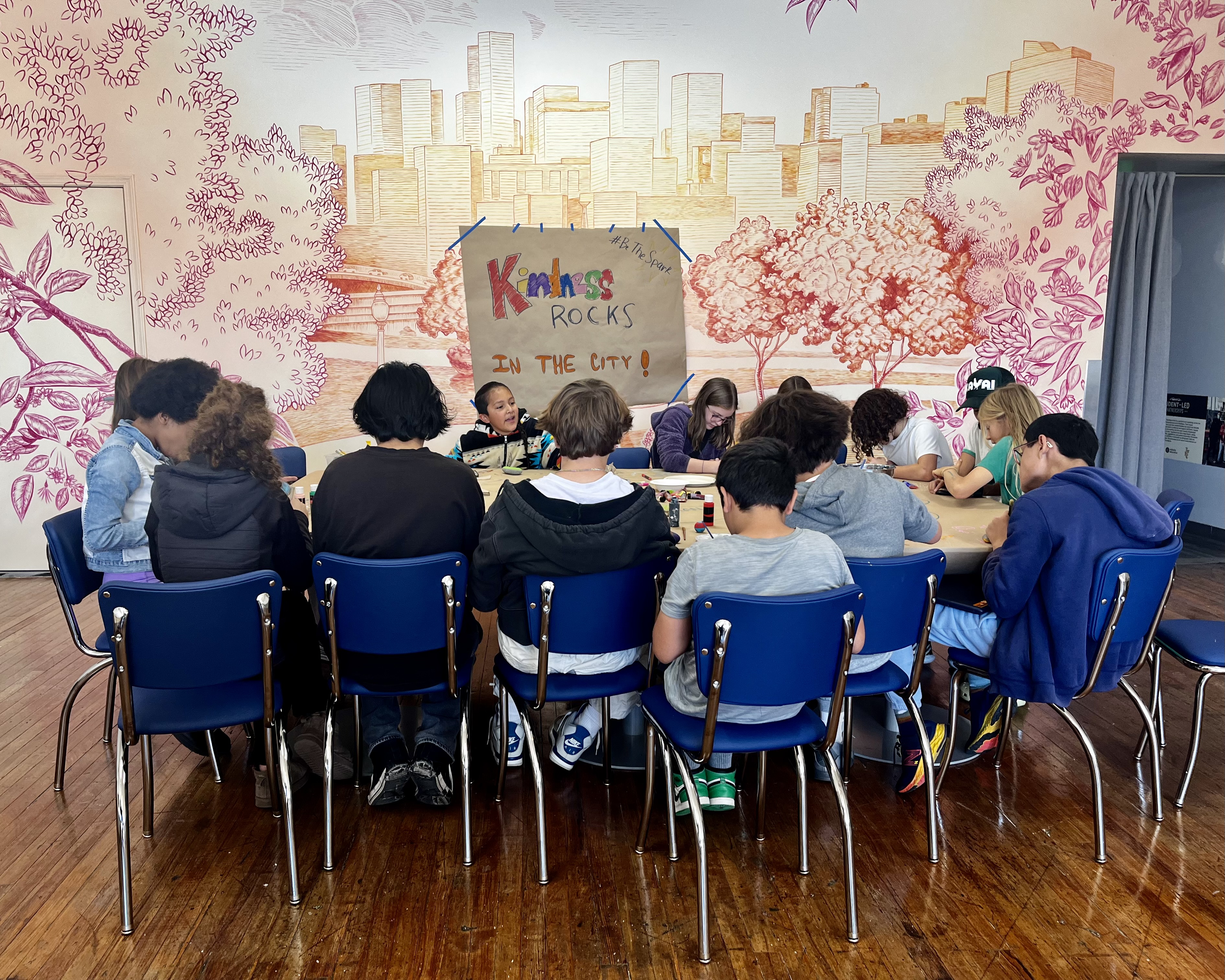 Paying it Forward in Kindness, Love, and Community is the mission. Kindness Rocks and the City not only makes a statement via painted rocks of positivity in the city, yet also in the classroom.